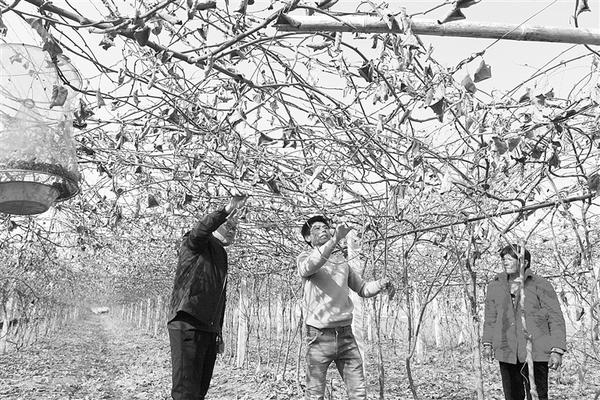 11月26日,在商水县邓城镇牛张庄村,“土专家”李东峰(中)向群众传授猕猴桃剪枝技术。入冬以来,该县积极引导当地种植、养殖、加工等方面的“土专家”,与致富能力不强的群众开展技术结对帮扶,帮助群众依靠实用技术和网络信息增收致富,助力乡村振兴。 记者 付永奇 通讯员 刘飞 摄