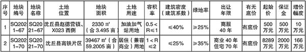 备注: SQ2021-67号:1.宗地“三通一平”(宗地外通路、通电、通水,宗地内土地平整)。2.由辖区政府负责按时向受让人交付土地。SQ2021-70号:1.宗地“五通一平”(宗地外通路、通电、通讯、通上水、通下水,宗地内土地平整)。2.依照河南省政府第200号令,该地块应按照其一次性规划新建或者新增地上总建筑面积的6%比例修建防护级别6级以上防空地下室。3.建筑高度≤45米。4.商业建筑面积所占比≤30%。5.由辖区政府负责按时向受让人交付土地。