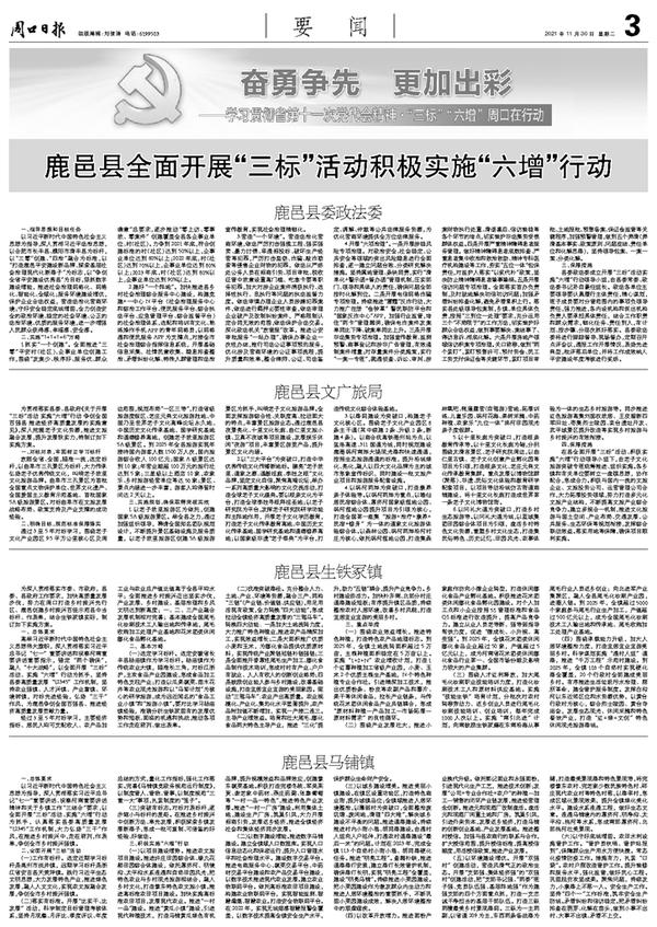 鹿邑县全面开展“三标”活动积极实施“六增”行动