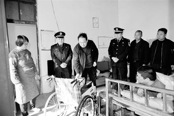 入冬以来,商水县公安局组织民警深入到困难群众家中,着力为其解决实际困难,助其脱贫致富,同时倾听辖区群众的心声,征求群众的意见和建议,拉近与人民群众的距离。图为11月30日,袁老派出所民警为王屯村困难群众送去轮椅。 郭利军 摄