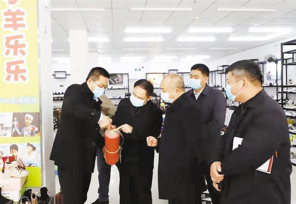 在贾滩镇政府,检查组详细了解了该镇贯彻落实全省冬季安全生产和消防工作电视电话会议精神、安全生产百日会战专项行动等工作开展情况。对该镇万客来购物广场、王子鞋城等“九小场所”消防安全责任落实、消防设施配备、安全宣传教育培训等情况进行实地检查(如图),对发现的问题和隐患进行现场反馈,并提出整改意见。