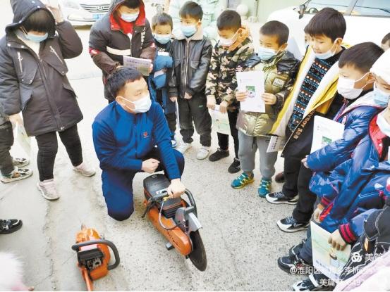 本报讯 (记者 侯俊豫 文/图) 为了进一步普及消防安全知识,增强师生消防安全意识,帮助师生真正掌握在火场中迅速逃生、自救、互救的基本方法,提高抵御火灾和应对紧急突发事件的能力,11月30日,淮阳区消防救援大队的消防员深入区李柿园小学,为该校师生送上了一堂丰富多彩的消防安全知识课(如图)。
