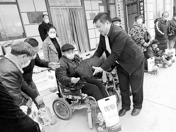 12月16日上午,市慈善总会、市三川社工义工服务中心在郸城县巴集乡魏冢行政村开展爱心捐赠助力乡村振兴活动,向村图书室捐赠500本图书,并为因病困难家庭、孤寡老人等送去了面粉、食用油、棉衣等。记者 豆娜 摄