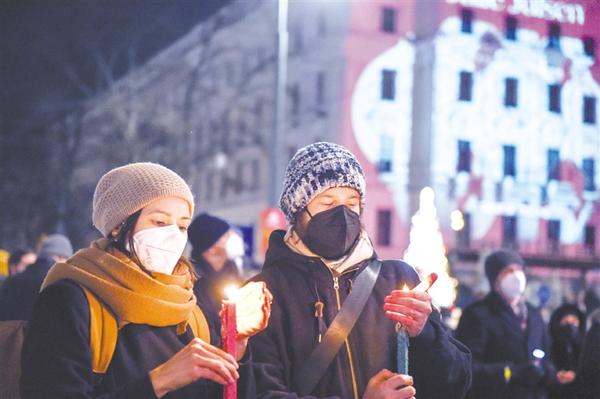 12月19日,在奥地利维也纳,人们用烛光悼念新冠逝者。