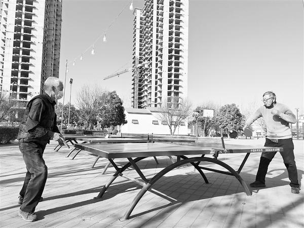 近年来,我市不断加大力度,完善全民健身设施,在社区、街头游园等地规划建设小型健身活动场地、安装健身器材,积极打造完善城市社区“15分钟体育健身圈”,为广大市民提供多样化的健身锻炼场所,让市民乐享运动健身的便利。图为市民在中心城区某社区旁的广场打乒乓球。