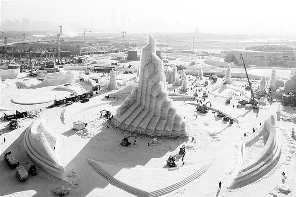 第二十三届哈尔滨冰雪大世界以“冬奥之光,闪耀世界”为主题,园区占地面积82万平方米,景观建设面积40万平方米。目前,冰雪大世界园区正在加紧施工,预计于12月25日开园迎客。新华社记者 谢剑飞 摄