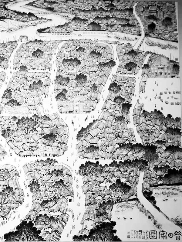 周口老街承载着周口历史乡愁的记忆。有人说,周口是一座水上漂来的城市。就此,笔者曾经写过《周口老城商脉考》,把周口老城商业的历史概括为“一条河,两个集;颍岐口,接千里;三川汇,成化始;千帆集,逐波兴;百条街,十会馆; 讲诚信,义利行;老字号,意隽永;阑珊处,新芽萌;老城厢上流光影,新时代里看复兴。”周口老街的历史不仅是一部商业史,也是一部宏阔深邃的人文地理、政治、经济、文化、军事和城市发展史, 更是周口人经年累月的集聚、创业、生活和奋斗史,周口八景,市井万象,正史志书,坊间故事,非常丰富多彩,让人津津乐道。尤其值得一提的是,周口老街、新街、文化街、南山货街、剪股街一带曾是老周口的核心区,这里还保留着为数不多的历史街巷空间肌理和老房老院,比如连接老街和新街之间的红石板巷、春瑗当铺旧址、同仁医院旧址、李家大院、张公馆、刘公馆等。查看1950年的周口市街详图可详细了解,葛庆亚老先生的画作《昔日家园》也有形象描绘。在《昔日家园》中,沙颍河穿城而过,贾鲁河汇流其中。低矮的民居,弯曲的街道,关帝庙、二板桥、磨盘山、铁水牛、剧院、电影院、文化馆、广播站、五间楼、 牲口市、田园、三连坑等均在其中。再仔细看,县委、县政府(1950年为市委、市政府,1952年改为周口镇,属商水县管辖,县党政机关迁驻周口镇)、书店、银行、各类商铺在画中也有显现,小镇既有独特的古朴风情,也充满着时代的共鸣。