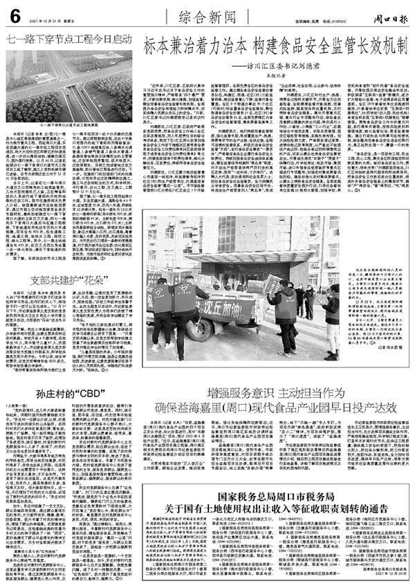 “食品安全,是一项政治工程、民生工程、民心工程,事关全区和谐稳定和创新发展的大局。做好食品安全工作,责任重大、使命光荣!”刘德君坚定地说,川汇区将始终坚持问题导向和结果导向,把食品安全工作放在突出位置来抓,彻底补齐食品安全链条上的薄弱环节,确保“产”得安全、“管”得到位、“吃”得放心。②8