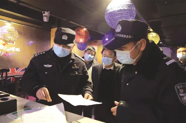 为落实省“两节两会”安保维稳工作会议精神,推进“三零”平安创建和“平安守护”专项行动深入开展,提升社会面管控能力,确保全县安全稳定,12月24日晚,西华县组织消防救援、公安等部门,对全县公共娱乐场所、特种行业进行消防安全和社会治安突击检查。 记者 张猛 摄