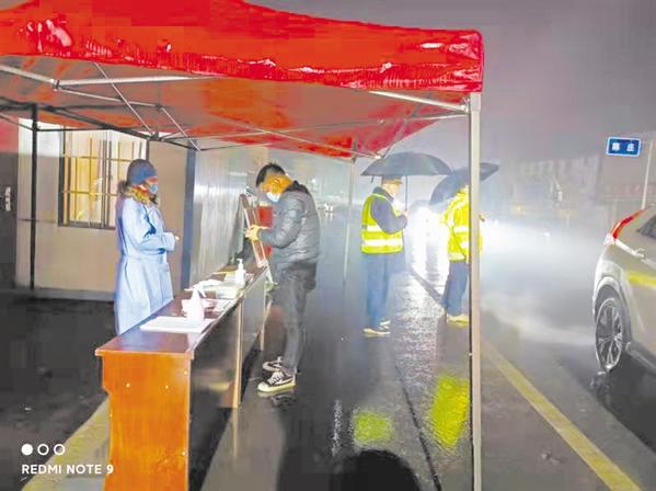 1月3日晚,按照市疫情防控指挥部要求,川汇区在辖区入市路口、高速路口设立疫情防控卡点,扎紧入市“口袋”。据了解,疫情防控卡点工作人员由公路、交通、公安、卫健、城管等部门人员组成,在周口西站、周口北站及周漯路口、周西路口进行24小时值班值守,保障辖区人民群众生命安全和身体健康。图一为工作人员在周口西站值守。图二为工作人员雨中坚守岗位。记者 韩志刚 通讯员 阮航 摄
