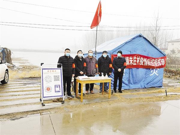 市应急管理局驻商水县姚集镇朱庄村工作队严格落实局党委的工作部署。连日来,驻村工作队放弃节假日休息,积极投身到疫情防控工作中(图①)。驻村工作队员与村委会党员干部组成党员志愿者突击队,成立防控指挥部,设立疫情卡点,昼夜值班,并逐人逐户进行疫情调查和健康检查,做好村民的健康状况登记。“村委会向群众分发宣传材料1000余份,悬挂宣传标语10余条,张贴宣传单200多份,同时,利用微信群、大喇叭广播、出动宣传车等不同的形式向群众讲解防疫知识,开展疫情防控宣传,确保防控知晓率达到100%。”驻村工作队员孙百成说。