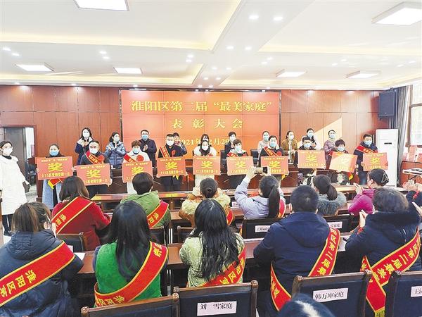 本报讯 (记者 侯俊豫 文/图) 为引领全区广大妇女和家庭弘扬中华传统家庭美德,传承好家风好家训,传递社会正能量,2021年12月29日下午,淮阳区妇联召开第二届“最美家庭”表彰大会,对30个“最美家庭”进行表彰(如图)。区委副书记王春华、区人大常委会副主任孟华出席会议。