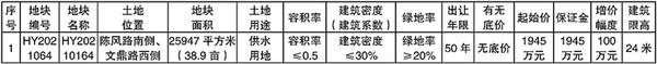 备注:1.具体建设方案须报规划部门批准后实施,土地出让合同签订后,12个月内必须开工建设,工期30个月,土地成交价款需在土地出让合同签订后60日内交清,交地时间6个月内。2.根据淮政【2019】45号文件精神,竞得人摘牌土地后,应将项目施工标发包给在淮阳设立公司的施工单位;房地产开发项目非淮阳境内企业竞买人在竞买申请时,申请书中应明确成立新公司、公司出资构成及成立时间。3.土地竞买保证金必须以竞买申请人(单位)自身的名义交纳,竞买申请人(单位)与交款人(单位)名称不一致的,无法确认其竞买资格,交纳款项无效。4.根据《淮阳县自来水公司改制工作推进会会议纪要》(2021年7月26日)文件精神和《周口市淮阳区国有资产监督管理局的函》:HY2021064号地上附着物价值1182.95万元与土地进行捆绑出让,竞得人将地上附着物资金汇入财政局专户(账户名:周口市淮阳区财政局非税收入专户,中国建设银行淮阳支行,账户:41001557910050001478)。5.具体以规划部门出具的规划指标为准,详见规划设计条件或批复文件。