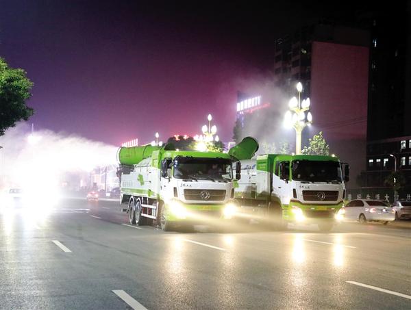 1月8日晚上,郸城县按照县新冠病毒肺炎疫情防控指挥部安排部署,由县卫健委、疾控中心负责技术指导,县城市管理局、交警大队负责具体实施的消毒消杀工作,在县城主次干道、超市(室内作业)、广场、绿地等重点公共区域进行,助力切断疫情传播途径。记者 徐松 摄