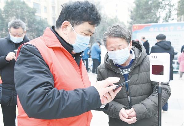 志愿者帮助老年人登记个人信息。记者 孙安平 摄
