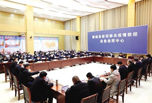 本报讯(记者 徐松 文/图)1月10日晚,郸城县召开新冠肺炎疫情防控工作专班调度会议(如图),县领导李全林、董鸿、王中红、常青、宋一兵、蒋磊、毛茹、陈强、刘锋磊、庞艳杰等出席会议。