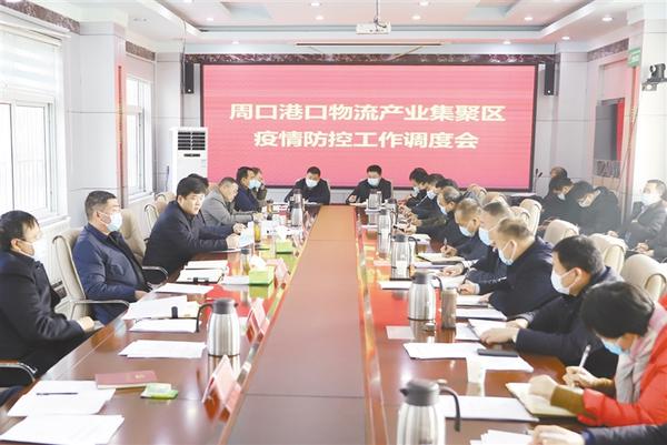 本报讯 (记者 宋风 文/图) 1月13日,周口港区召开新冠肺炎疫情防控工作调度会。港区党委书记孙鹏,港区管委会主任、港区党委副书记胡军华对下一步疫情防控工作进行详细部署(如图)。港区领导班子成员杜广贤、李翔、刘学庆,市公安局港区分局局长康群泉,港区二级调研员张东立出席会议。