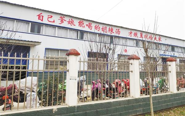 在丁军的企业车间最高处醒目位置,一句标语——“自己爹娘能喝的胡辣汤,才敢呈现给大家”引起了记者的关注。