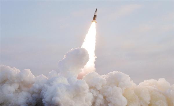 这张朝中社1月18日提供的图片为正在发射的一枚战术导弹。