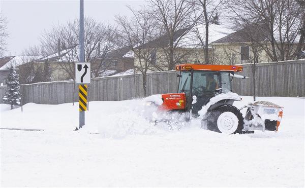1月17日,在加拿大大多伦多地区米西索加,一辆除雪车为人行道清雪。