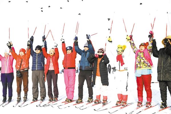 ② 1月23日,滑雪爱好者在冰封的江面上为北京冬奥会加油。