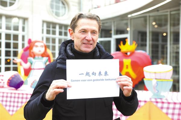 ① 1月12日,在比利时安特卫普,比利时安特卫普皇家动物学会会长德莱斯·赫波拉尔特手举“一起向未来”的主题口号,祝福北京冬奥会。