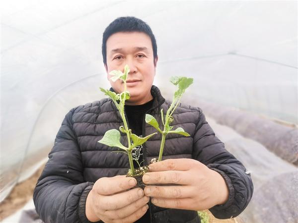 人勤春来早。2月7日,在扶沟县崔桥镇一家庭农场里,瓜农罗建设向记者展示自己培育的西瓜苗(如图)。今年,经过技术员的指导,他培育的120亩西瓜苗长势良好。