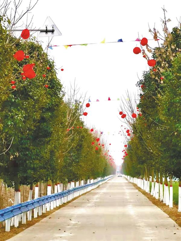 走进杜庄行政村,顿时让人眼前一亮,怪不得村民们那样高兴。只见一条干净整洁的水泥路通往村庄,路两侧的行道树上悬挂的一个又一个小红灯笼格外引人注目,让人忍不住驻足拍照留念。