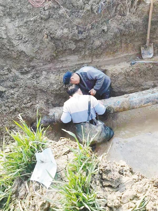 本报讯 (记者 高洪驰 通讯员 王子磊 文/图) “哎!你看,那麦田地里怎么都是水啊?快给水厂打电话,估计是水管爆了!”2月1日,沈丘县刘庄店镇水厂自来水主管网意外爆裂,该县水利局接报后,第一时间组织人员抢修,确保群众春节用水。