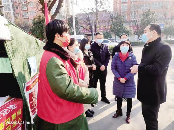 本报讯 (记者 韩志刚 文/图) 2月1日,农历大年初一上午,区委书记刘德君先后到商南高速周口北站疫情防控服务点、周口市人民医院、七一路街道办事处文明社区疫情防控服务点、集中隔离点等地督导检查疫情防控工作,看望慰问春节期间坚守岗位的工作人员(图一),向他们致以亲切的问候和新春的祝福,鼓励大家继续坚守岗位,用辛苦指数换取群众的幸福指数,确保广大人民群众欢度新春佳节。区领导陈心宇、王艳、朱成刚参加督导。