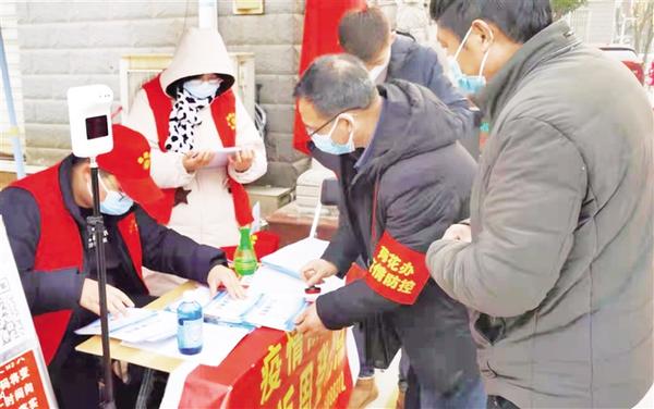 “病毒不放假,我们也不能放假。”2月1日上午,农历大年初一,在川汇区七一路街道办事处文明社区市教体局家属院门口,社区干部、区直分包单位工作人员和志愿者正在对进入小区的人员逐一进行检查。