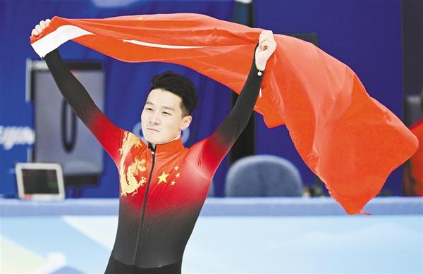 当日,在首都体育馆举行的北京2022年冬奥会短道速滑项目男子1000米决赛中,中国选手任子威夺得冠军。新华社记者 鞠焕宗 摄