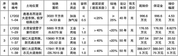 备注:LY2021-04块地竞买人应符合在“鹿邑县范围内因城市建设已拆除另行安置,并与政府签订了加油站拆迁安置协议的成品零售企业”的相关条件。