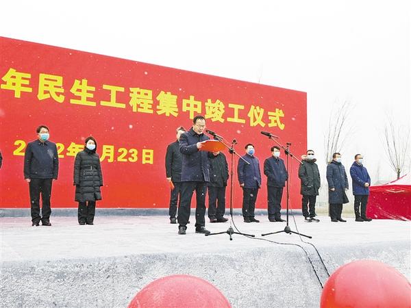 本报讯 (记者 侯俊豫 文/图) 雪舞红梅开笑靥,金虎报春抖精神。1月23日,淮阳区2021年多个民生工程竣工。这些向新年献礼的民生工程的竣工,彰显了区委、区政府“说了算、定了干,再大困难也不变”的铮铮誓言,兑现了淮阳区委、区政府“道路全通、路灯全亮、围挡全拆、土工布全揭、绿化树木全栽”的庄严承诺。