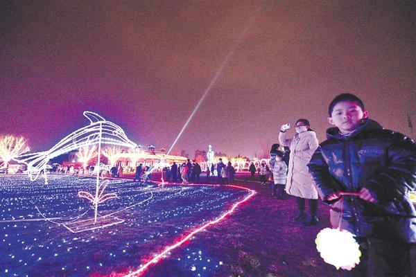 关帝庙东侧绿地布满各种彩灯造型