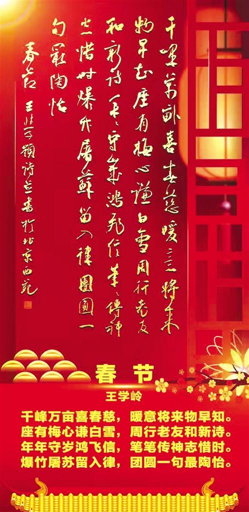 但是,新春的到来总是令人欢欣鼓舞,尤其是在看到王学岭的新春书作之际。王学岭是周口走出去的书法名家,供职于中直机关,历任中国书法家协会理事、行书专业委员会副主任,中国文联文艺志愿者协会理事,中国美术馆展览学术专家组成员,中国文字博物馆艺术委员会委员,中国人民大学艺术学院、中国传媒大学文法学部艺术创作院等高等院校特聘教授。
