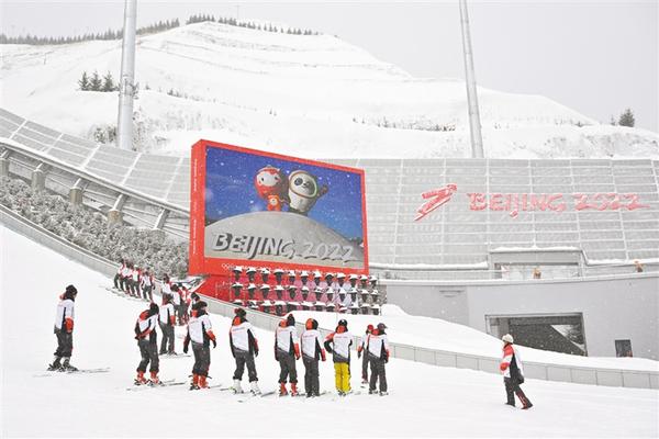 2月13日,国家跳台滑雪中心技术官员在雪中整理赛道。当日,北京2022年冬奥会张家口赛区迎来降雪天气,国家跳台滑雪中心技术官员及工作人员紧急清雪、整理赛道,为当天举行的官方训练提供保障。新华社发