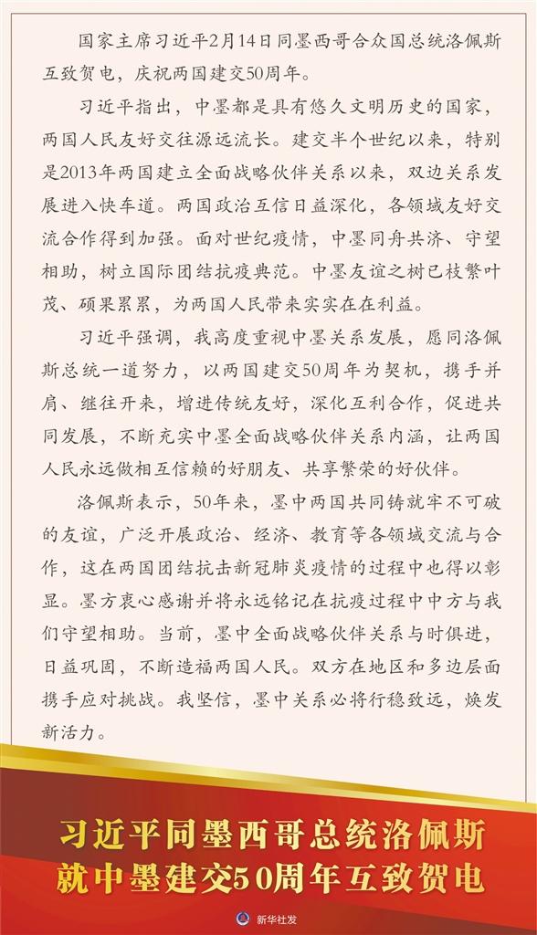 习近平同墨西哥总统洛佩斯就中墨建交50周年互致贺电