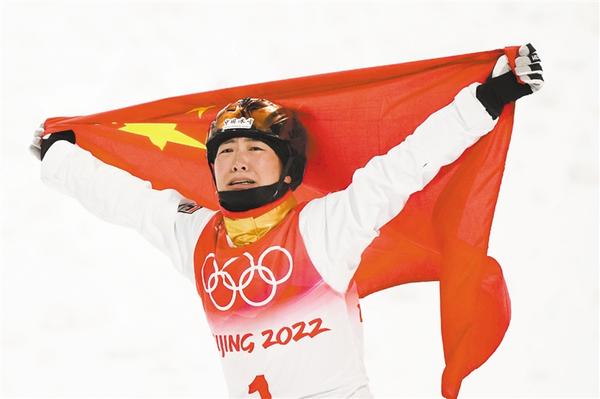 当日,北京2022年冬奥会自由式滑雪女子空中技巧决赛在张家口云顶滑雪公园举行,中国选手徐梦桃夺得冠军。新华社记者 薛玉斌 摄
