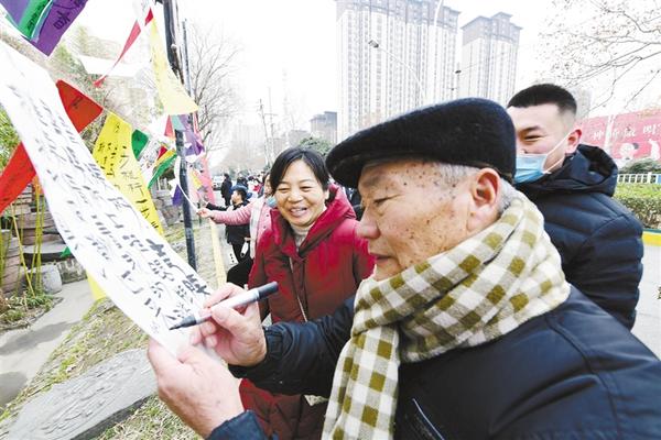 2月15日,是中国传统佳节元宵节。为了让广大群众了解节日习俗,感受传统文化,当天上午,我市在市文化艺术中心广场举办元宵节灯谜竞猜活动,吸引了众多谜语爱好者参与其中。图为灯谜竞猜活动现场。①2