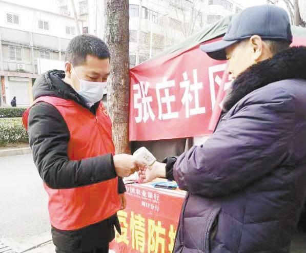 农行周口分行贯彻落实市委、市政府及上级行各项疫情防控工作部署,牢记初心使命,强化责任担当,科学安排、全员行动、压实责任,确保疫情防控和业务经营“两手抓、两不误”,全力以赴推进各项金融业务发展。图为该行志愿者在联系点张庄社区开展疫情防控工作。记者 徐如景 通讯员 冯振涛 程飞帆 摄