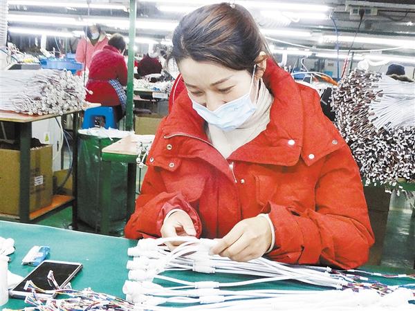 2月18日,沈丘县周营镇一个电子来料加工组装车间内,工人们正忙着加工订单电子元件。近年来,该镇在做优做强传统产业的同时,大力发展小微企业,让周边群众在家门口实现就业增收。谢辛凌 摄