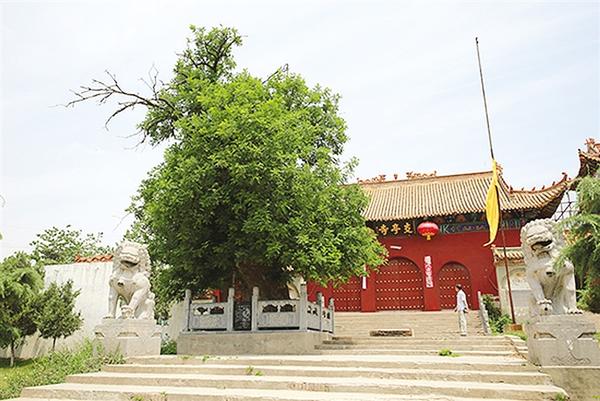 最先映入眼帘的是支亭寺山门前的一棵古槐,虬枝盘旋,古朴盎然。树高约10米,干围4.3米,古槐长势旺盛,枝叶婆娑。树下的碑文记载,此树为公元前180年所栽,至今已有2000多年了。这棵古槐历尽沧桑,让人浮想联翩,给古刹蒙上了一层神秘、朦胧的外衣。