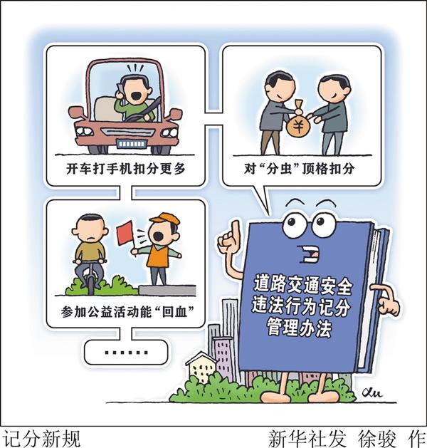 4月1日起,《道路交通安全违法行为记分管理办法》将正式施行。新规对现行记分项目进行了增减,还对部分项目的分值进行了调整。新华社发