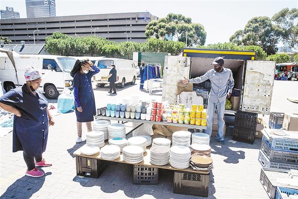 2月23日,在南非立法首都开普敦,摊贩在露天市场出售商品。南非财政部长埃诺赫·戈东瓜纳23日在立法首都开普敦表示,南非财政状况前景有所改善,但仍面临显著风险。新华社记者 吕天然 摄