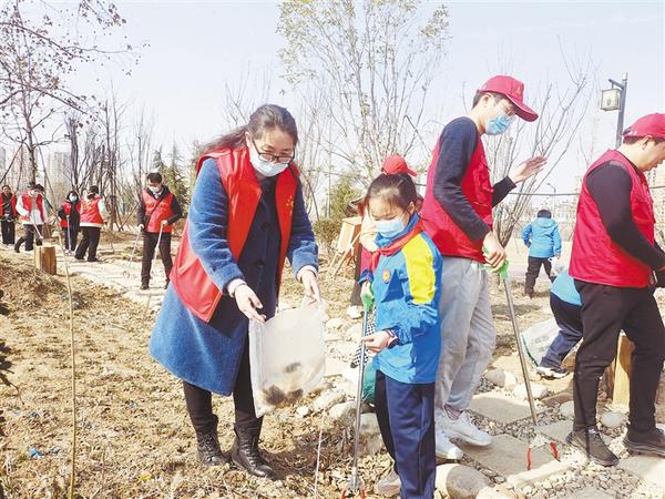 2月25日下午,周口市文昌小学联合市环境保护协会开展“大手拉小手 保护母亲河”活动,以实际行动让家乡的碧水长流,让母亲河变得更美。活动中,该小学60余名师生和身穿红马甲的志愿者来到沙颍河畔,用火钳、铁钩等工具对河滩边的烟蒂、纸屑、废塑料袋和饮料瓶等垃圾进行捡拾清理。记者 窦娜 摄