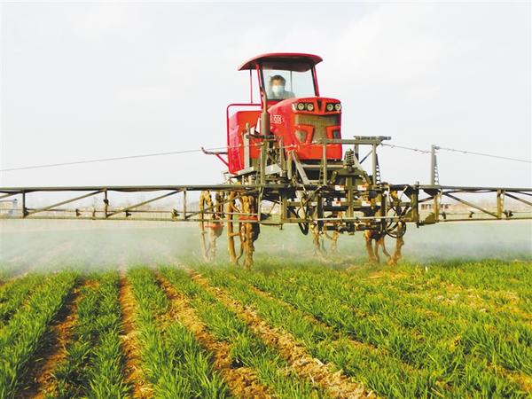 “人勤春来早,春耕农事忙。”雨水节气过后,气温逐渐回升,小麦开始返青,春耕备播和田间管理进入了关键时期,连日来,沈丘县以学习贯彻落实新近发布的中央一号文件精神为契机,抢抓农时,不负春光,积极组织种粮大户、家庭农场、农业合作社和“小农户”,积极开展科技壮苗、化控除草,防控病虫害,全力以赴投入春季农业生产工作,确保今年夏粮丰产丰收。图为沈丘县周营镇欧营村平安农业种植合作社的科技示范田里,农民驾驶大型植保机械,喷洒小麦专用化控除草剂。 谢辛凌 摄