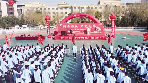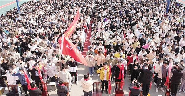 2月26日,项城一高举行高三东院春季开学典礼暨百日誓师大会。大会对上学期表现突出的教师和成绩优异的学生进行表彰。各班班主任为学生送上祝福,并许下不畏艰辛、无私奉献的庄严承诺。 记者 朱红 摄