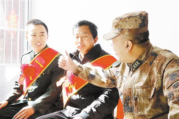 3月1日上午,伴随着阵阵锣鼓声,鹿邑县人武部有关领导及县退役军人事务局、乡镇负责人一行,先后来到荣立“二等功”功臣赫玉印和刘江北的家中,看望慰问功臣和功臣家属,并向他们致以亲切的问候。图为鹿邑县人武部领导(左三)正与刘江北(左一)及刘江北的父亲(左二)亲切交谈。