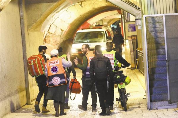 3月7日,以色列医护人员在耶路撒冷老城事发现场工作。以色列警方7日发表声明说,一名巴勒斯坦人当天在耶路撒冷老城持刀袭击以色列警察,随后被开枪打死。新华社发